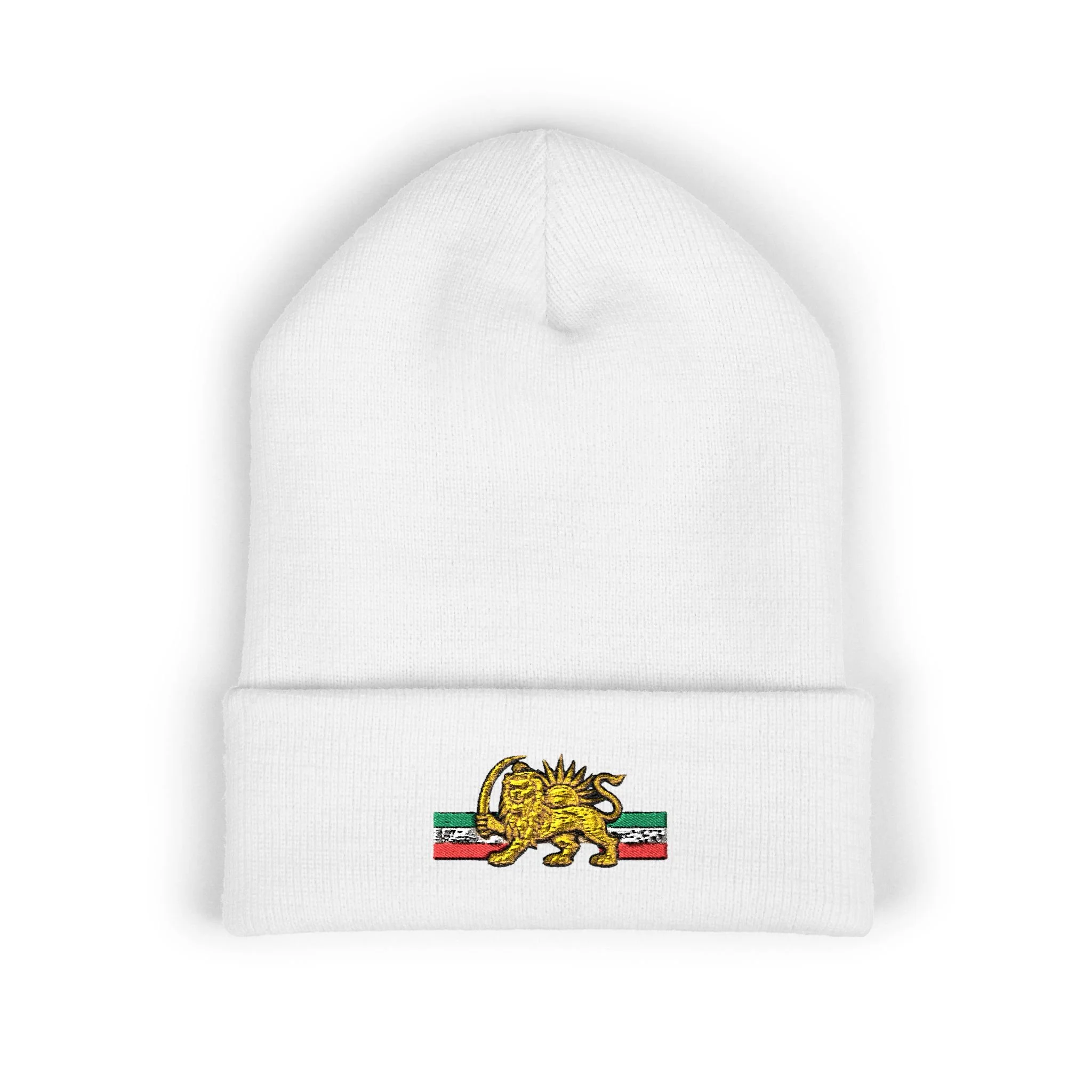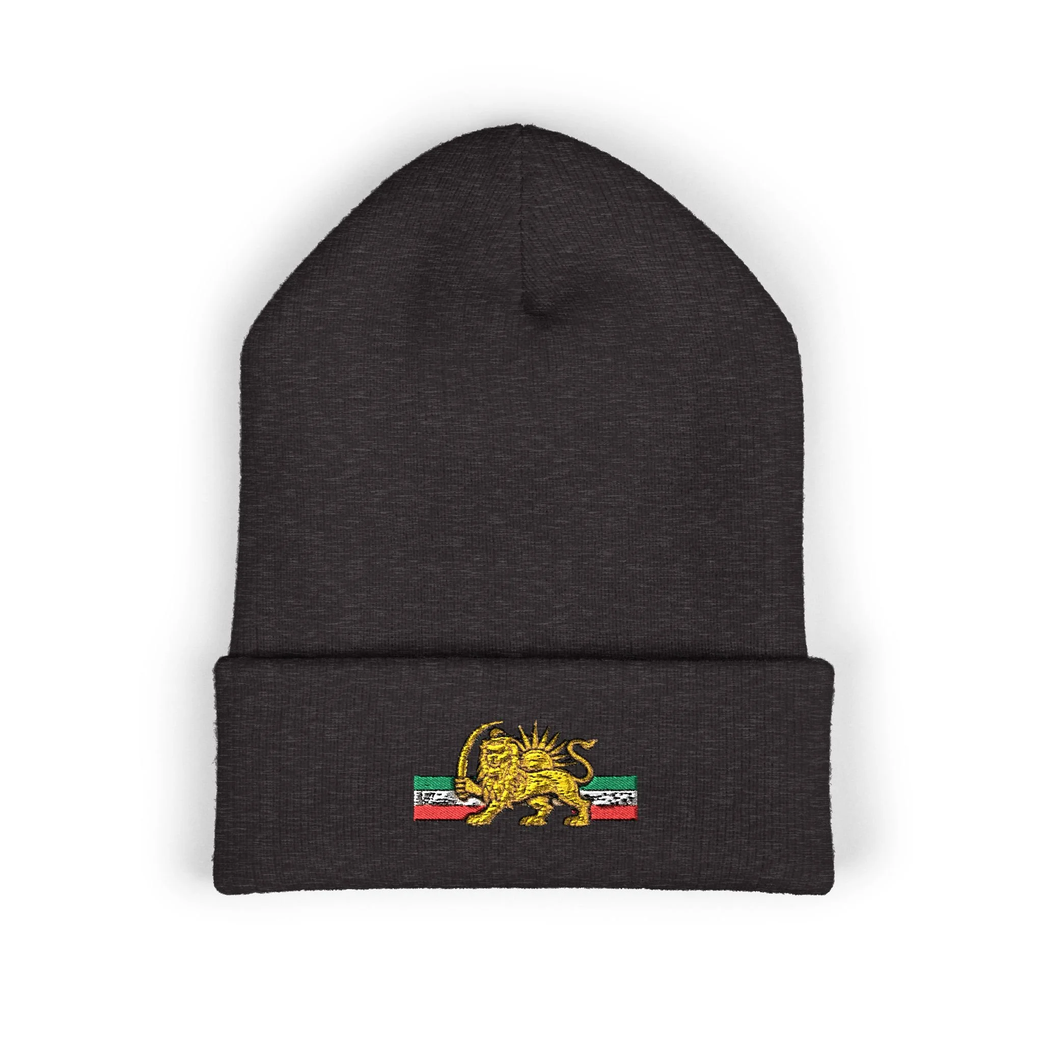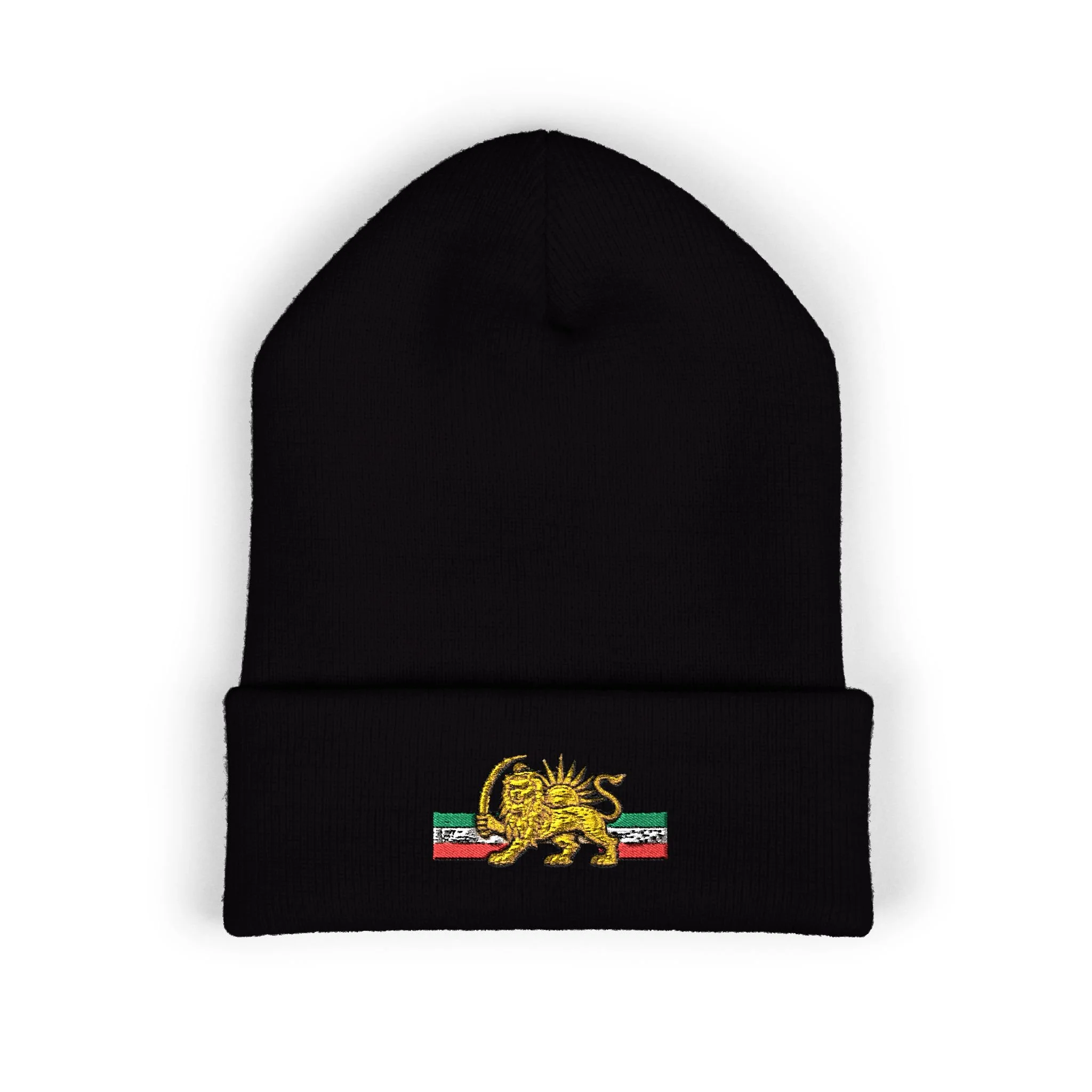 Lion & Sun Beanie | Embroidered Cuffed Beanie